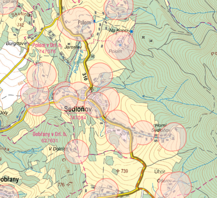 Přiložená mapa ukazuje místa, kde platí zákaz používání pyrotechniky v naší obci